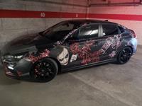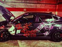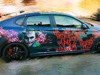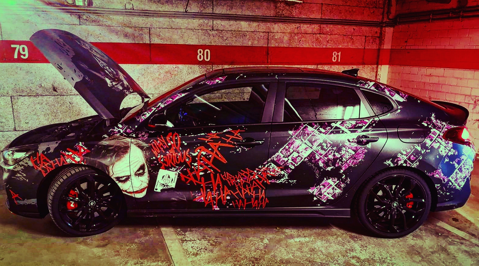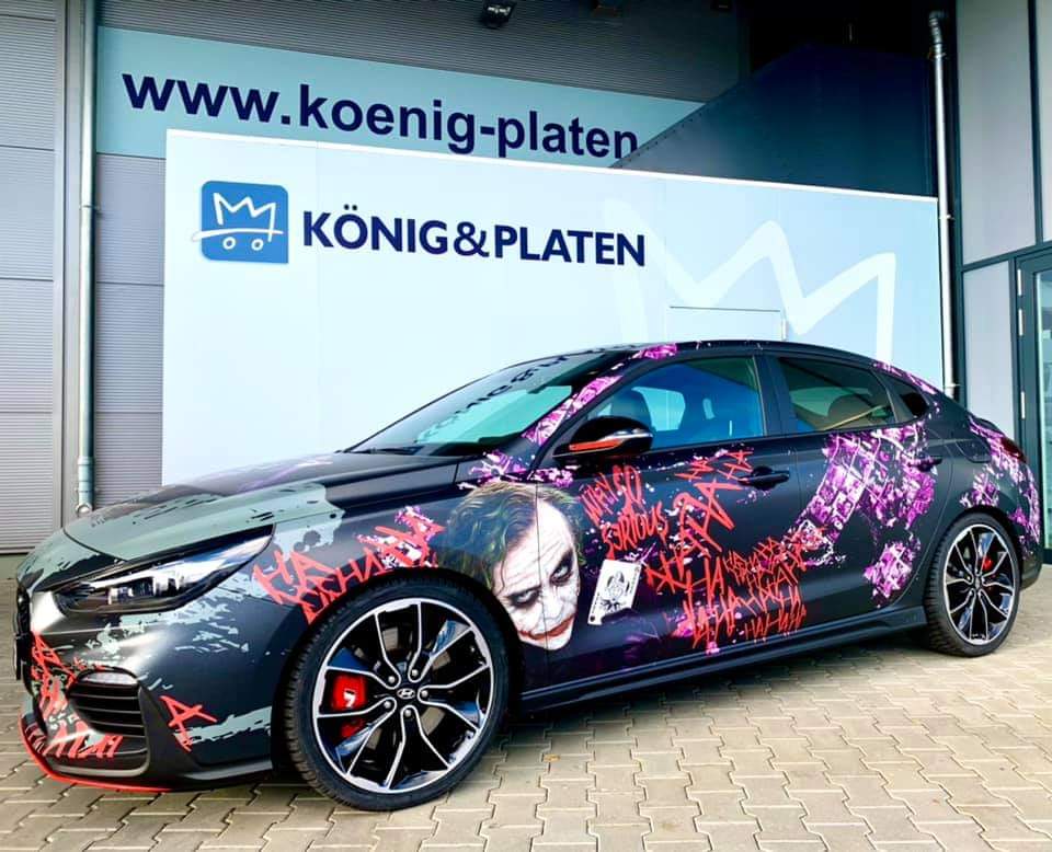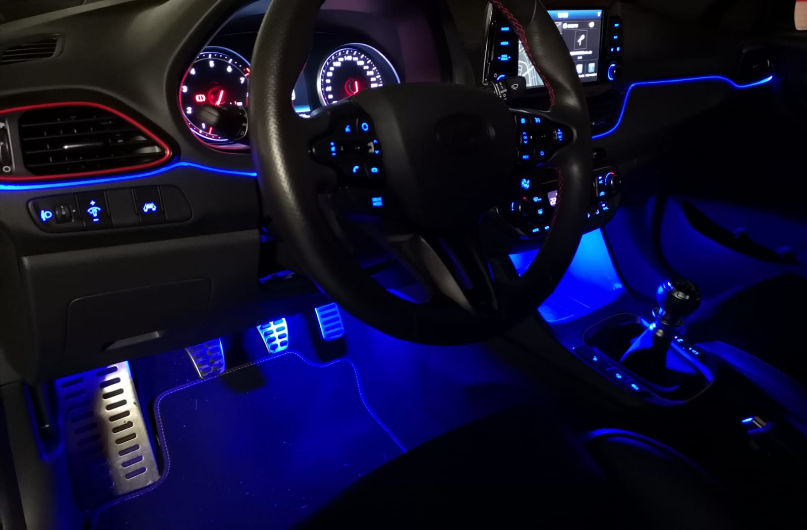 Folierung(matt, mit Glitzerflocken) außen, Umrandung Frontgrill und Innenseite der Motorhaube von MS-Carbon Folien Design, Pipercross Sportluftfilter, Haubenlifter von Hyundaizubehör, Sommerräder 19Zoll von Brock, Endrohre von Gruppenzwang (mattgrau lackiert), Lenkrad Emblem in mattschwarz, Ambiente Beleuchtung von Lotus Lantern, LED Sonnenblenden und Kofferraum in grün von Benzinfabrik.